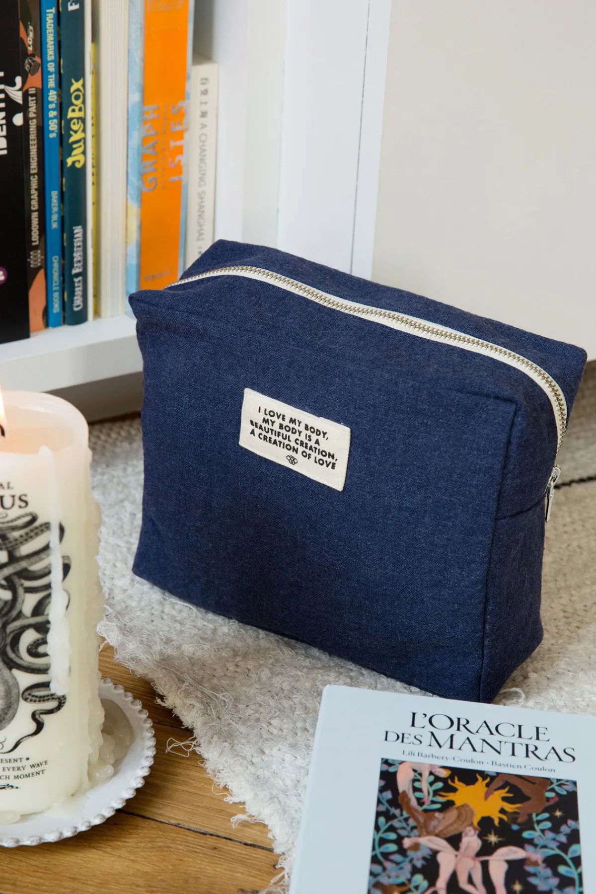 La deuxième pièce de notre collaboration avec Lili Barbery est une trousse zippée bleu nuit en coton recyclé qui a une double fonction. A la fois pochette pour transporter vos petites affaires et housse pour recouvrir les briques de yoga, c’est l’accessoire indispensable à glisser dans votre sac de yoga.