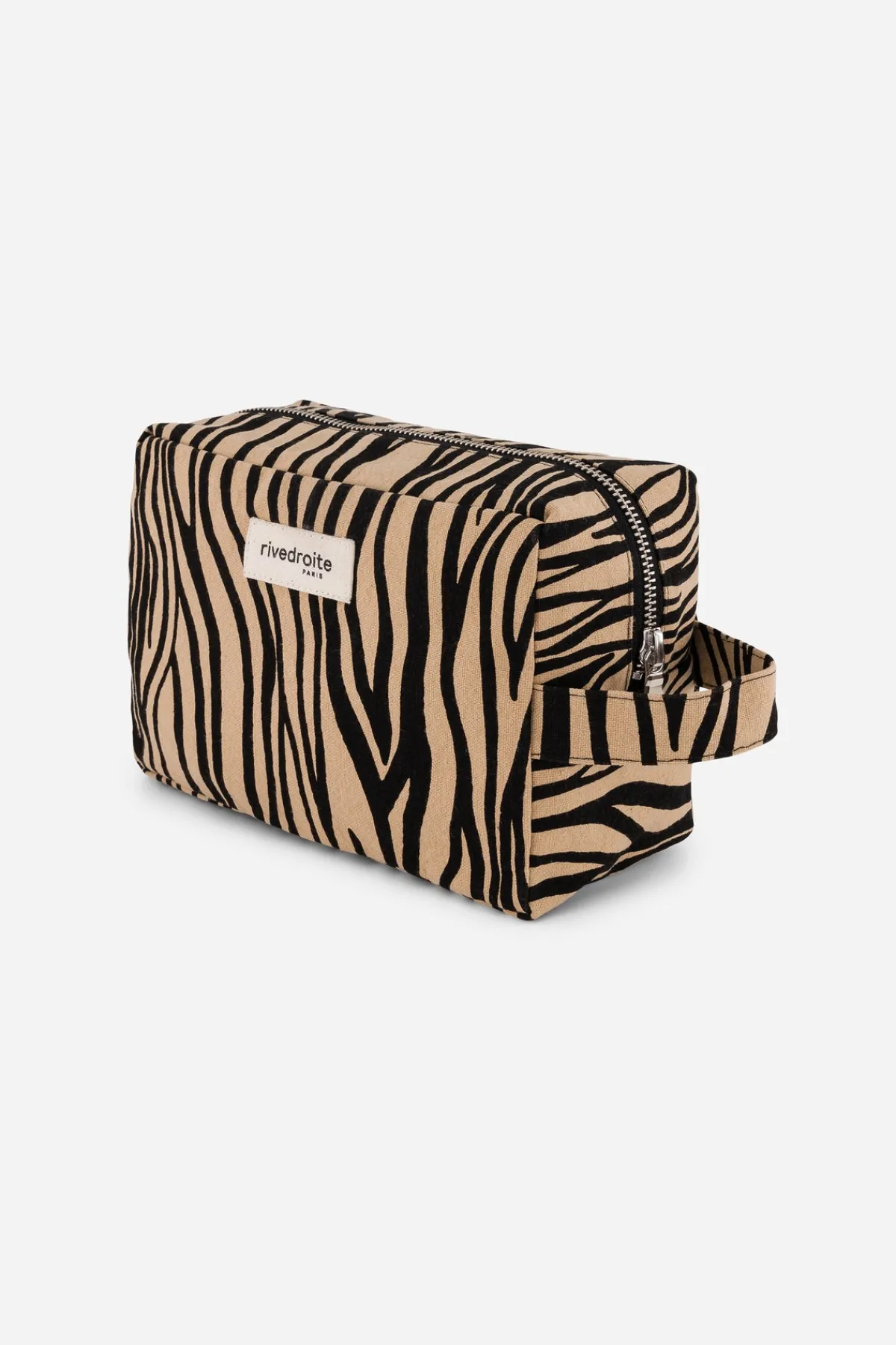 Tournelles XL version Zèbre c’est LA trousse de toilette, plus grande que Tournelles, elle vous permet d’emporter plus de choses avec vous. Vous pourrez la glisser facilement à l’intérieur de votre sac pour rassembler tous vos petits essentiels, shampoing, gel douche, crème pour les mains, déodorant…Sa forme carrée et sa anse permettent de l’emporter partout avec vous.